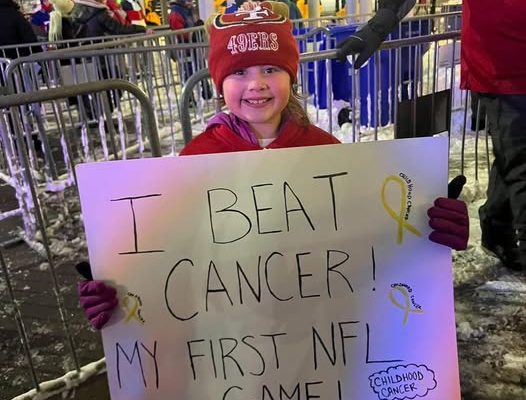 Mikey DeCamilla took to social media to vent her frustrations, with her post including an image of Mia holding a sign that reads: “I BEAT CANCER! MY FIRST NFL GAME!”“Sadly we left earlier than planned,” Mikey wrote on Facebook. “Yes, the Niners are losing, but unfortunately we had to deal with the police because a drunk Bills fan decides it was cool to pass my husband and I and pushed our eight year old daughter Warrior Mia DeCamilla (down the stairs, in section 312!).”